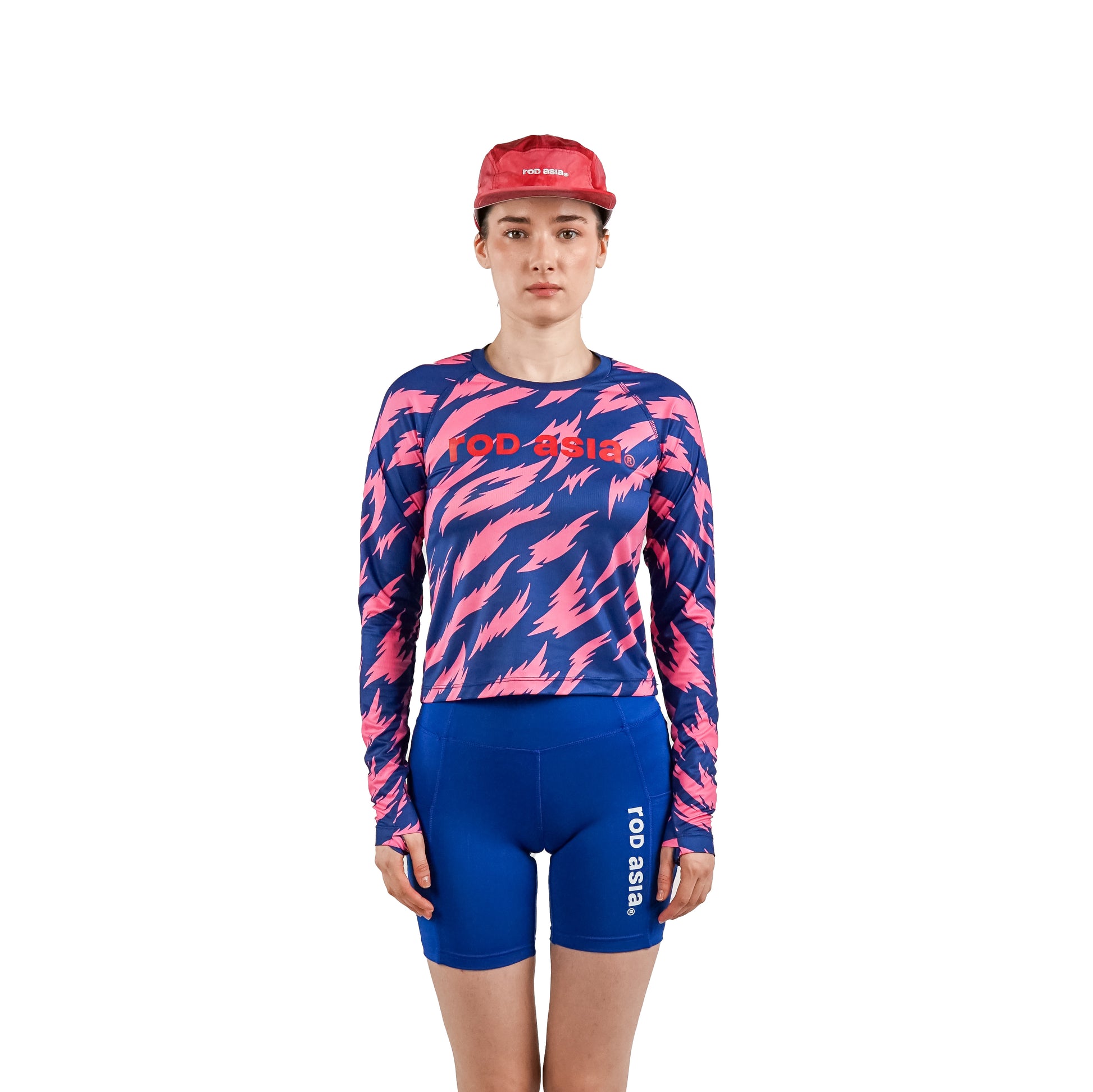 Rodasia logo on chest, vertically logo on back, full printed pink and blue